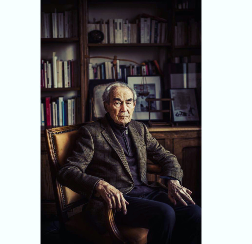 © Corentin Fohlen/ Divergence. 9 novembre 2022. Paris, France. Portrait de Robert Badinter, homme politique, ancien avocat et garde des sceaux, chez lui dans le 6eme.