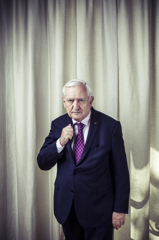 © Corentin Fohlen/ Divergence. Paris , France. 20 avril 2023. Portrait de Jean-Pierre Raffarin, ancien premier ministre, dans son bureau de son ONG Leaders pour la Paix, avenue de Suffren