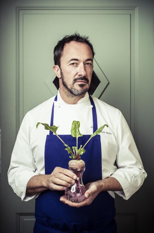 © Corentin Fohlen/ Divergence. Paris, France. 9 septembre 2025. Portrait de Pierre Gagnaire chef cuisinier dans son restaurant de la rue de Balzac dans le 8eme arrondissement